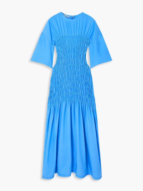 Shirred silk-satin midi dress