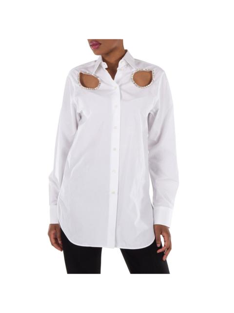 Stella McCartney Crystal-Embellished Cut-Out Shirt In White Cotton