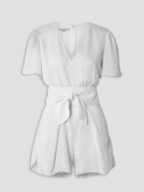 Lila belted silk-blend cloqué playsuit