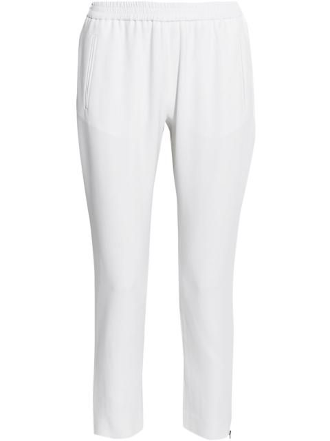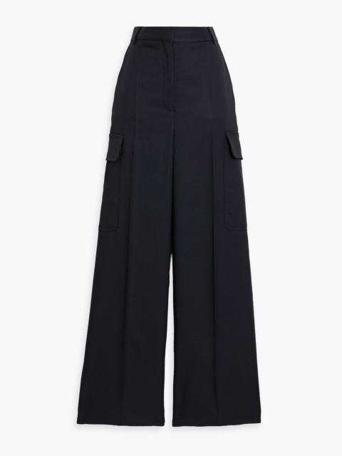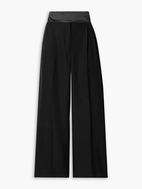 Pleated satin-trimmed wool-crepe straight-leg pants