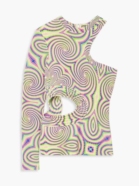 One-sleeve cutout printed stretch-jersey top