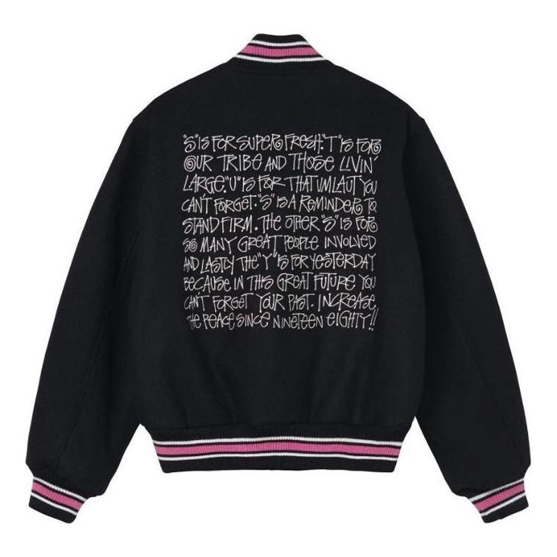 Stussy S Talk Melton Varsity Jacket 'Black' 115665