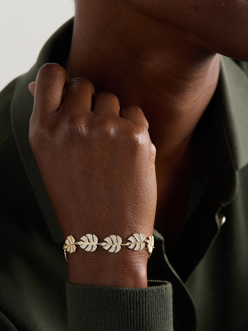 Monstera Leaf Eternity 14-karat Gold Diamond Bracelet