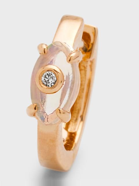 14k Gold Carved Stone Diamond Huggie Earrings