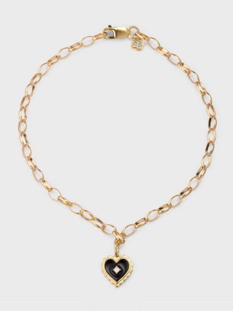 Prong Set Black Enamel Heart Charm Bracelet with Scallop Border