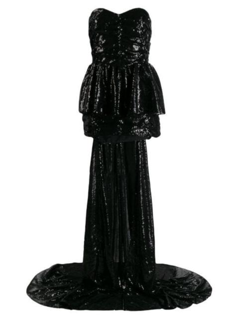 The Attico Women Black Sleeveless Off-Shoulder Midi Dress With Front Single Slit And Ruched Waist In