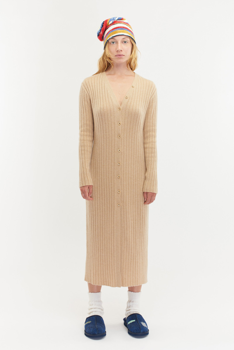 The Elder Statesman takes pride in creating one-of-a-kind handcrafted knitwear and accessories with a laid-back look influenced by the West Coast. They were founded in 2007 by Los Angeles-based designer Greg Chait. They created decorous custom blankets before expanding to garments that blended traditional craftsmanship with cutting-edge aesthetics. Each piece is painstakingly handmade with luxe materials such as plush cashmere, silk, and wool, and features vibrant stripes that imbue it with a timeless quality. Their collections feature items from cozy sweaters and scarves to elegant dresses and jackets that can elevate the experience of seasonal outfitting.