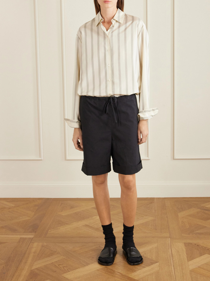 Elevate your summer wardrobe with The Row shorts, a standout in our luxurious women's clothing collection. The Row's minimalist approach delivers sophisticated and versatile designs, perfect for the modern woman who values style and comfort. Discover our curated range of The Row shorts, featuring high-quality materials and impeccable craftsmanship. Each piece is designed to be timeless and effortlessly chic, making them an essential addition to your seasonal attire.