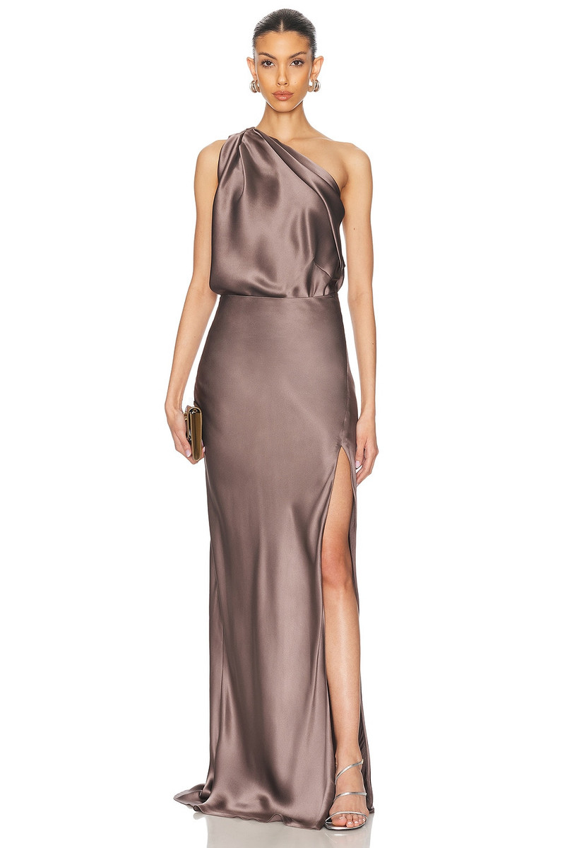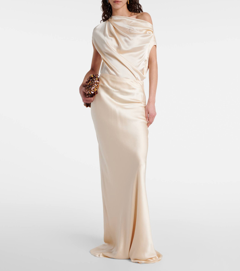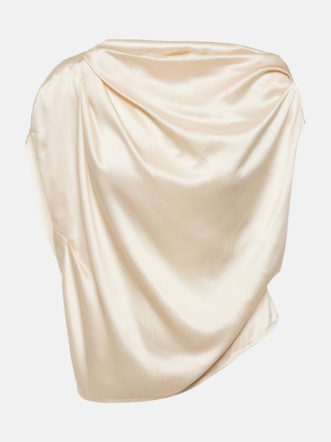 One-shoulder draped silk satin top