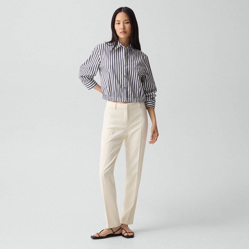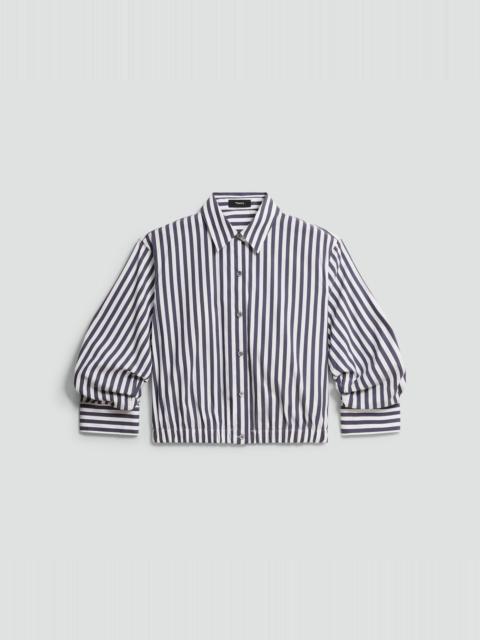 Cinched Cap-Sleeve Shirt in Striped Cotton-Blend