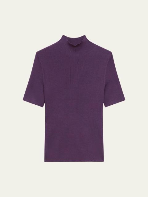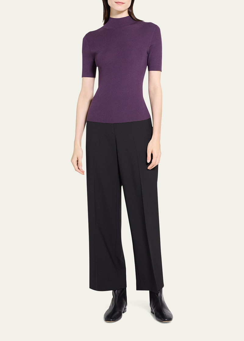 Leenda Regal Merino Wool Short-Sleeve Mock-Neck Top