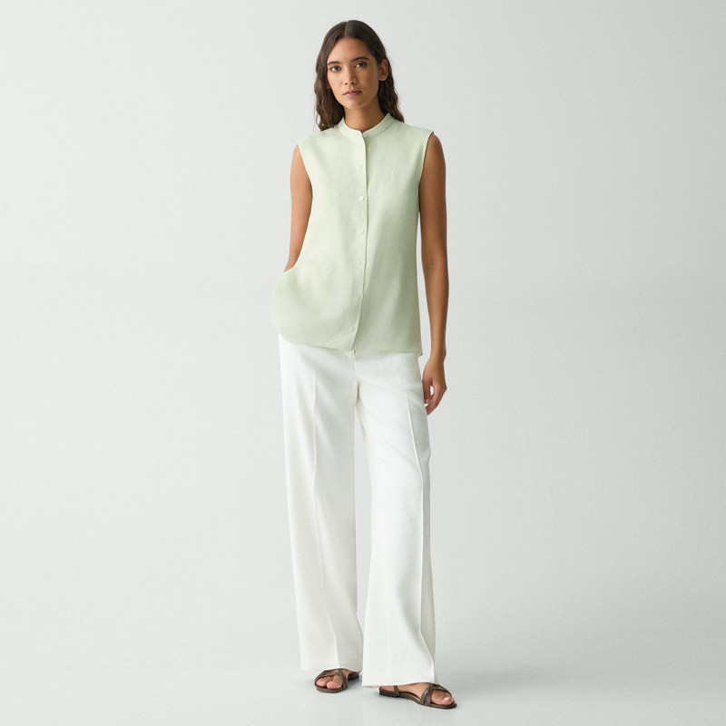 Sleeveless Asymmetrical Shirt in Linen-Viscose