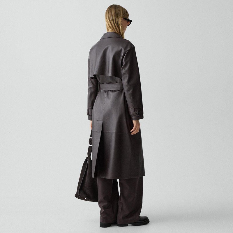 Oversized Double-Breasted Trench Coat in Sleek Leather