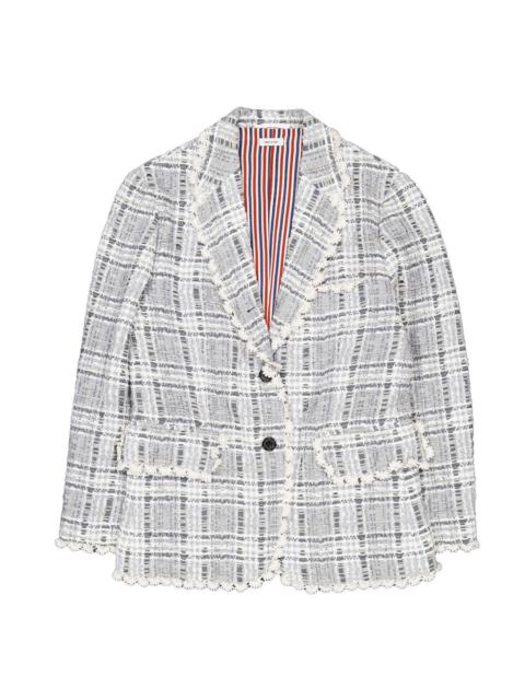 Thom Browne Ladies Med Grey Prince Of Wales Chenille Tweed Wave Classic Sport Coat