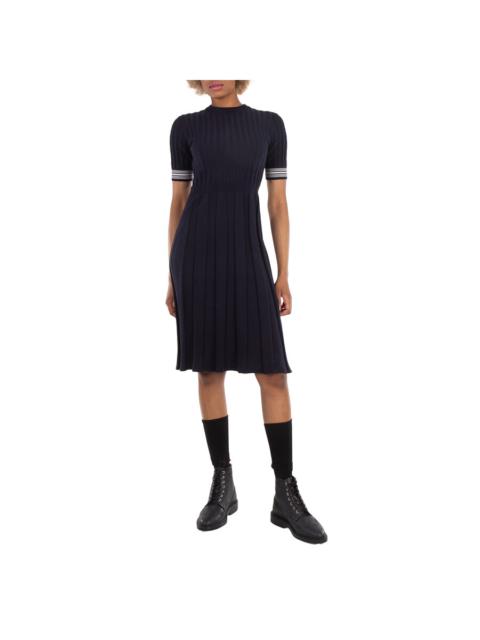 Thom Browne Ladies Cotton Pleated Cricket Striped Cable Dress