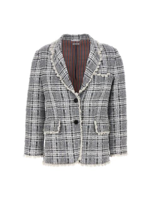 Thom Browne Ladies Med Grey Prince Of Wales Chenille Tweed Wave Classic Sport Coat