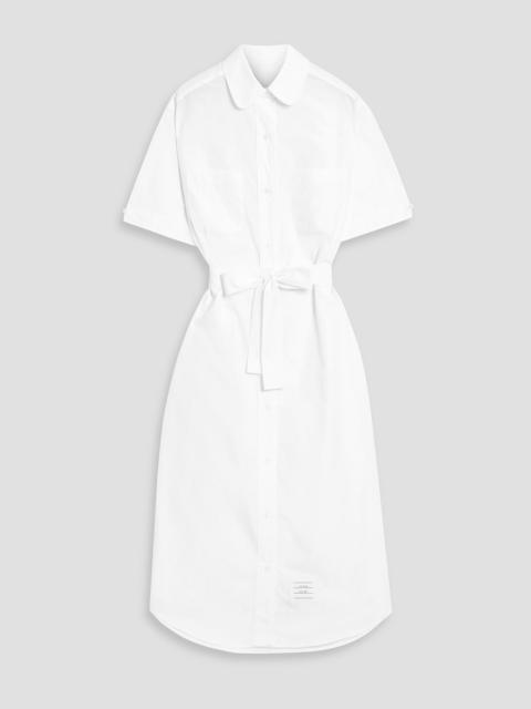Asymmetric striped poplin-paneled wool midi shirt dress