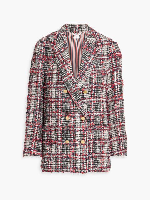 Double-breasted Prince of Wales checked wool-blend tweed blazer