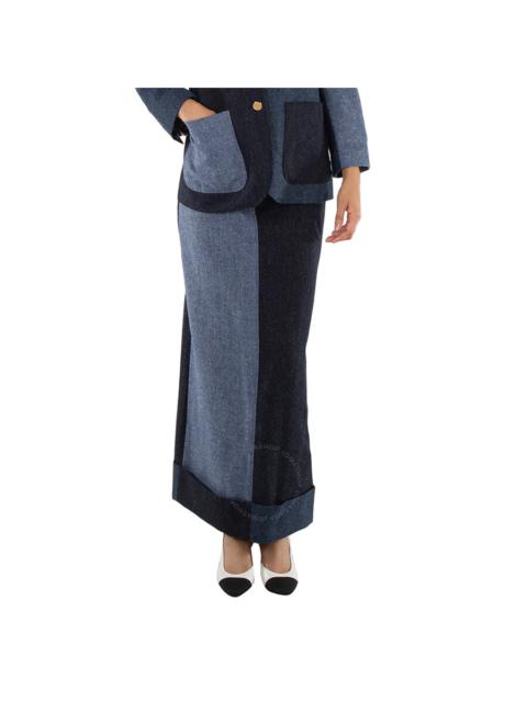 Thom Browne Ladies Check Summer Tweed Fray Maxi Low Rise Pencil Skirt