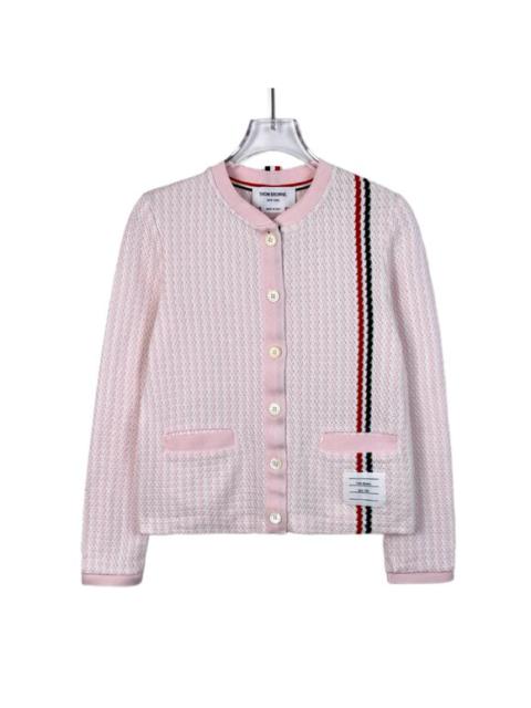 Thom Browne Light Pink Striped Cotton Crewneck Cardigan