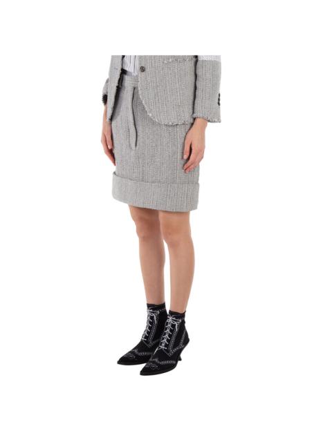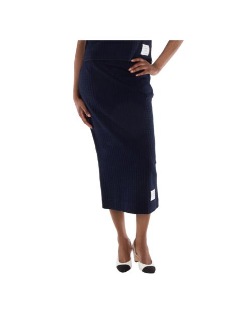 Thom Browne Ladies Check Summer Tweed Fray Maxi Low Rise Pencil Skirt