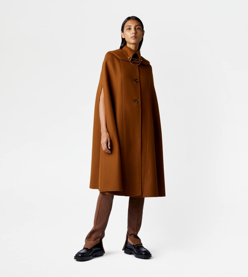 CAPE WITH BROOCH - BROWN