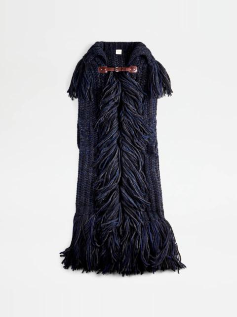 CAPE MOULINÉ WITH FRINGES - BLUE