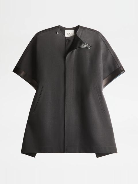 CAPE WITH LEATHER INSERTS - GREY