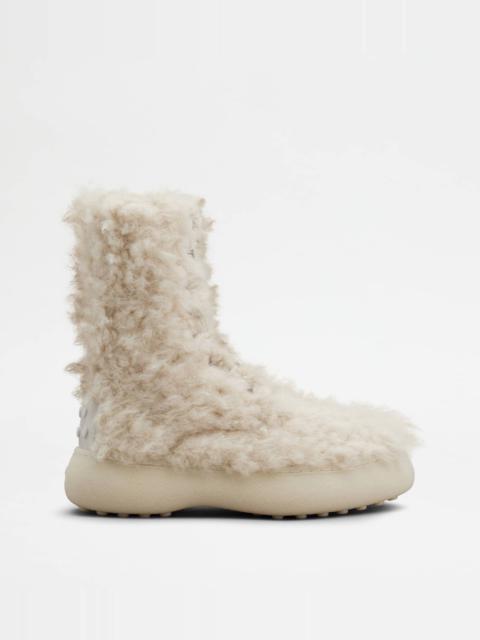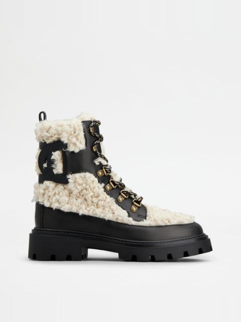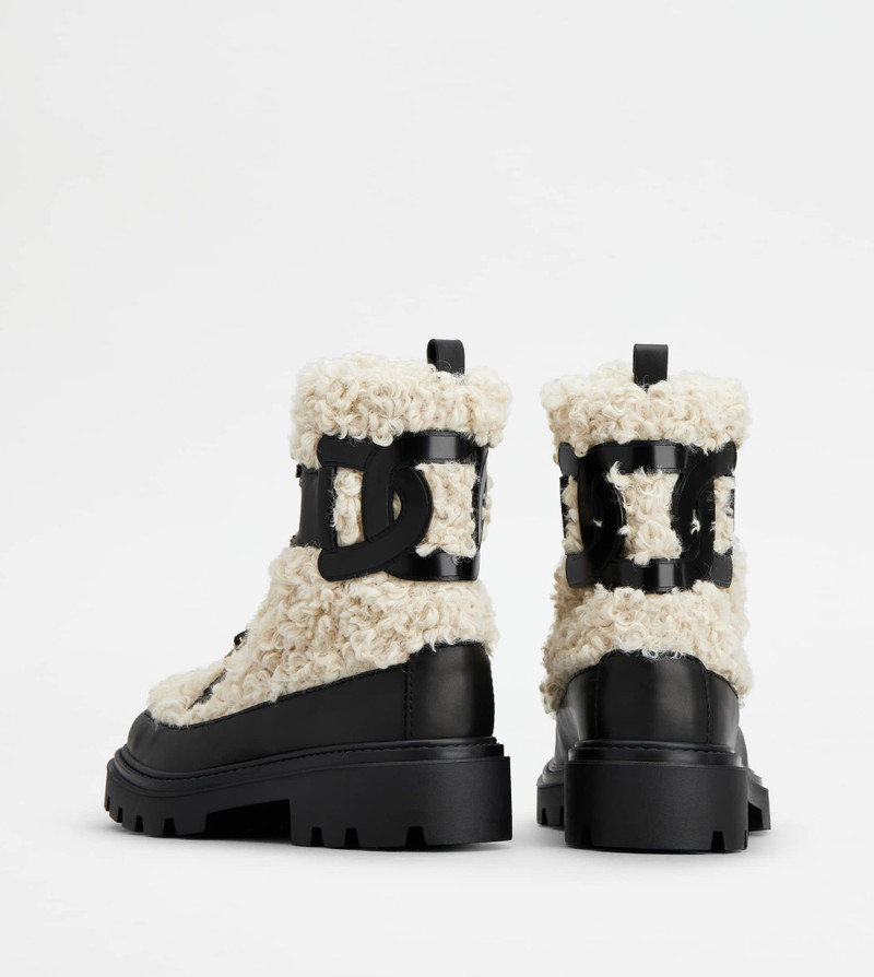 TOD'S W. G. LACE-UP ANKLE BOOTS IN FAUX FUR - WHITE