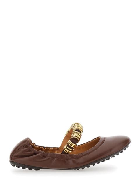 Tod's Women 'Dee' Brown Ballerinas With Decorative Rings On The Front In Leather Woman