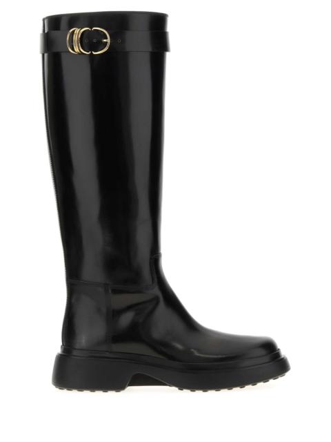 Tod's Women Black Loafers With Ring Detail On The Front And Rubber Sole In Leather Woman