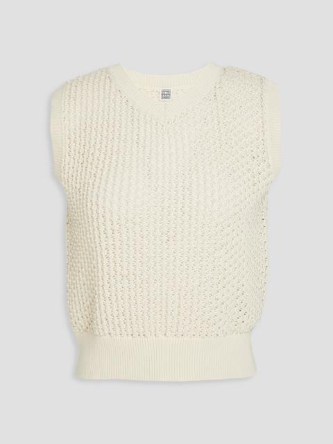 Ribbed bouclé-knit cotton-blend vest