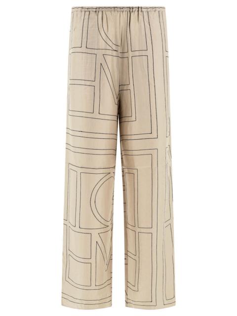 Toteme Silk Trousers With Monogram Logo Embroidery