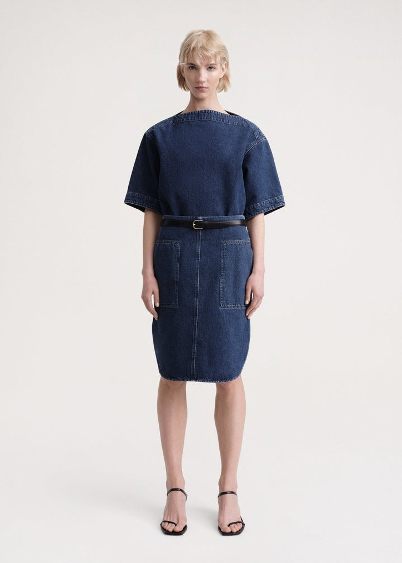 Curved-hem denim skirt dark blue