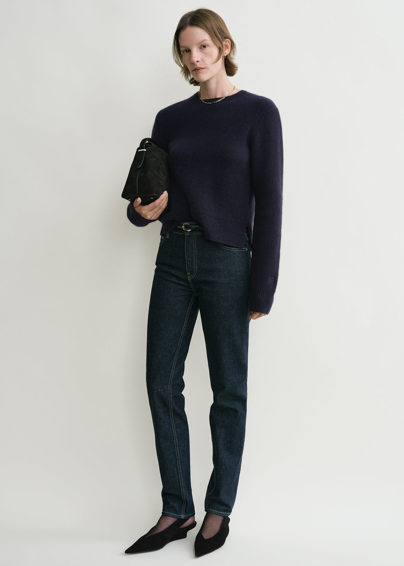 Cropped crew-neck knit navy