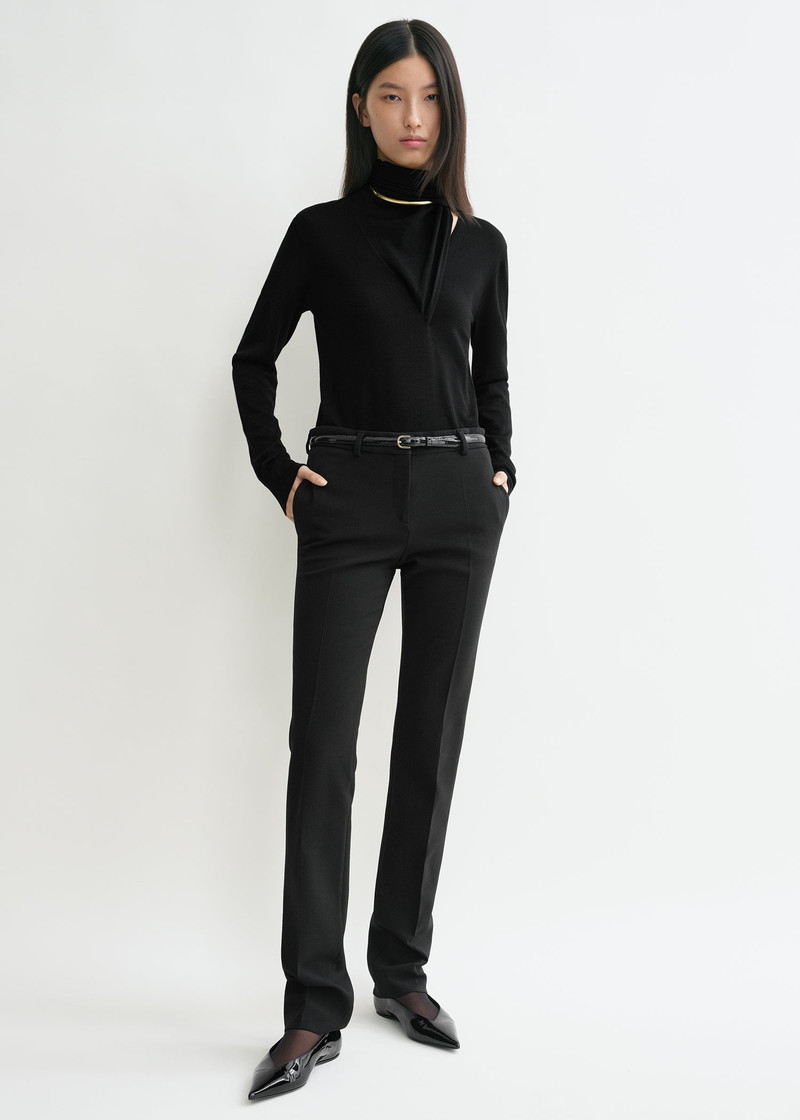 Draped-scarf fine knit black