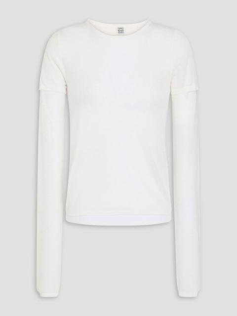 Lyocell-blend poplin and ribbed wool-blend shirt