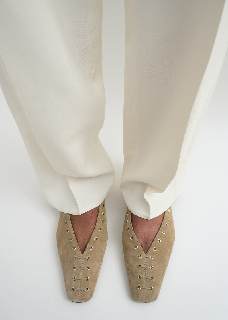 Step into sophistication with Totême shoes, a standout in our exclusive array of luxury women's footwear. Each pair of Totême shoes is crafted with meticulous attention to detail, balancing contemporary design with timeless appeal. Perfect for the fashion-forward woman, our curated selection offers everything from elegant flats to chic heels, ensuring comfort and style.