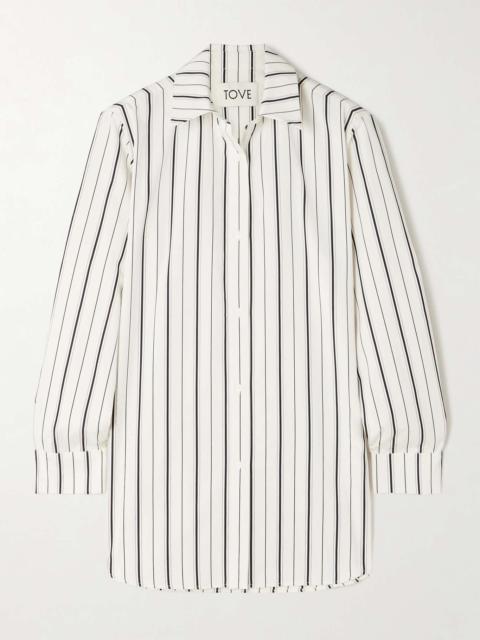 Tuiren strapless gathered stretch linen and cotton-blend tunic