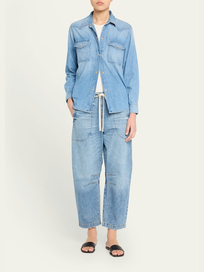 Jetties Beach Drawstring Barrel-Leg Jeans