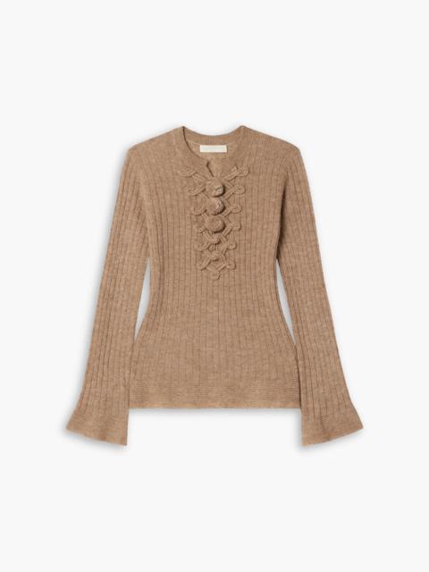 Magda pompom-detailed ribbed alpaca-blend sweater
