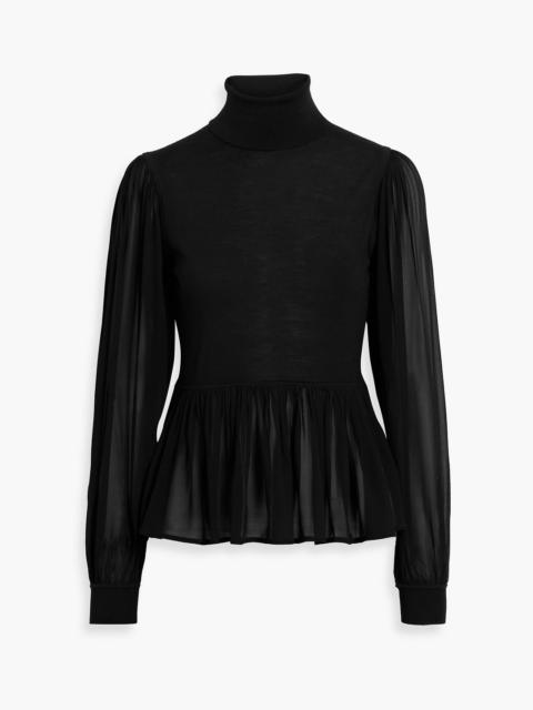 Liana chiffon-paneled wool and silk-blend turtleneck top