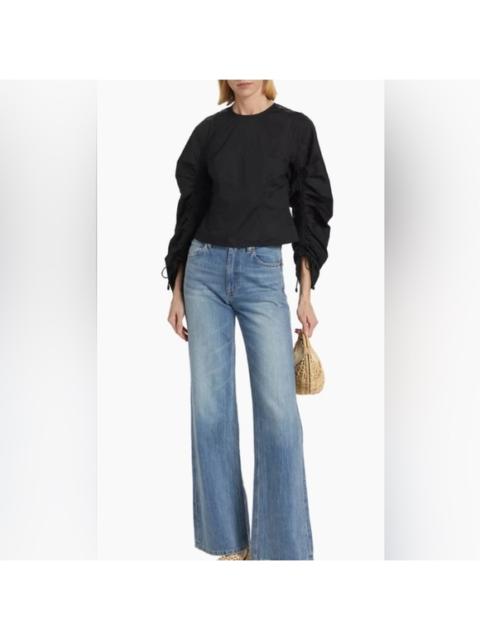 New! Ulla Johnson Lorna Ruched Puff-Sleeve Cotton Poplin Blouse Black Sz 6 $320