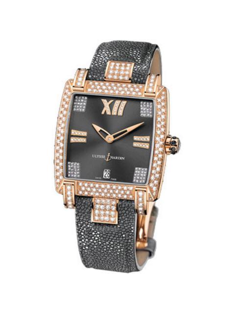 Ulysse Nardin Caprice Black Dial 18kt Rose Gold Diamond Black Stingray Ladies Watch 136-91AC-06-02