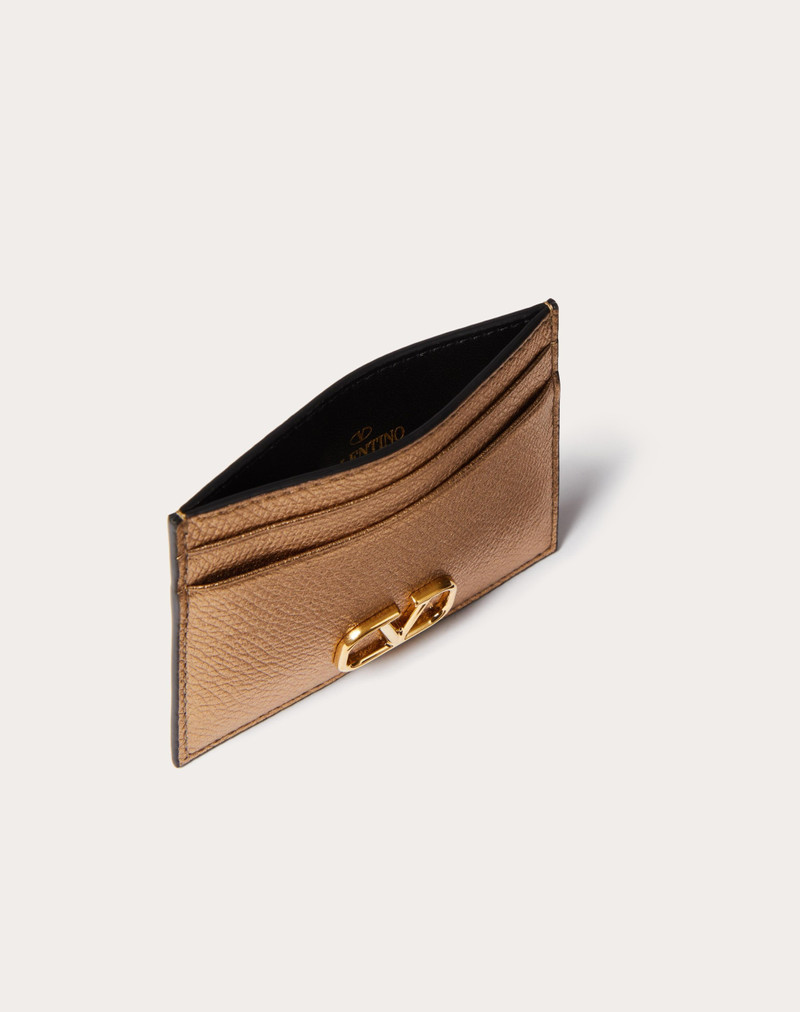 VLOGO SIGNATURE METALLIC GRAINY CALFSKIN CARDHOLDER