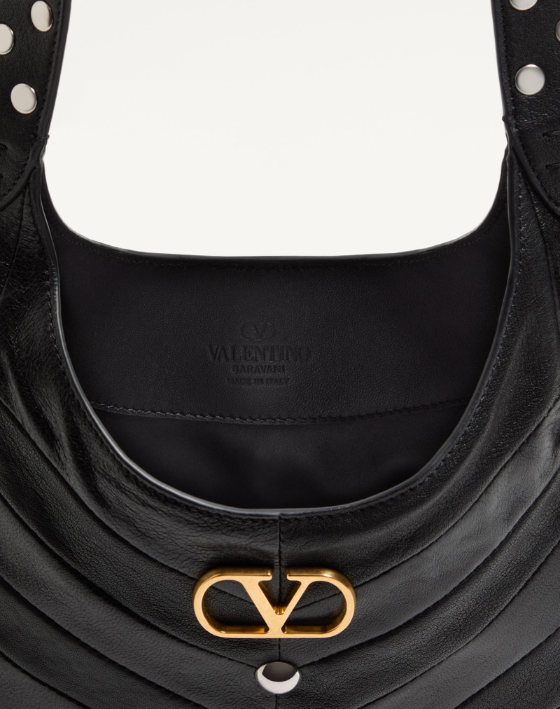 VALENTINO GARAVANI HOBOHO SMALL NAPPA LEATHER HOBO BAG WITH CHEVRON PATTERN AND STUDS