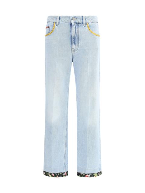 Valentino Women Blue Jeans With Logo Patch On The Rear And Floral Details In Denim Woman