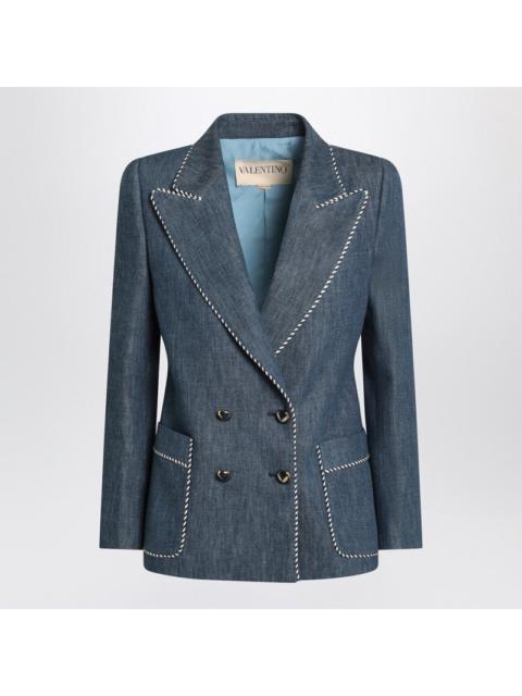 Valentino Double-Breasted Blue Jacket In Chambray Denim Women