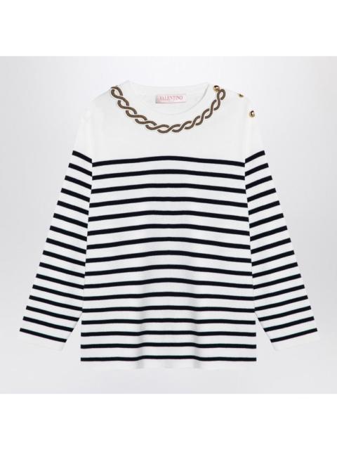 Valentino Ivory/Navy Striped Jersey With Embroidery Women