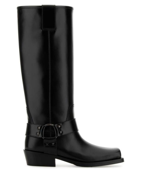 Valentino Garavani Women Black Leather Biker Rockstud Boots